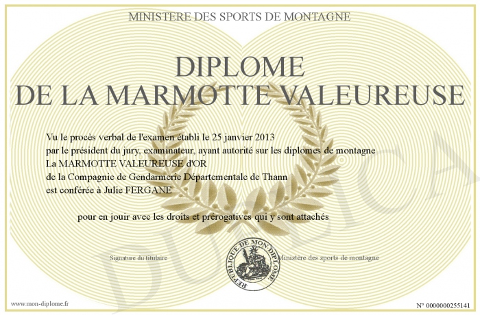 Envoyez par email votre Diplôme de la MARMOTTE VALEUREUSE personalisé