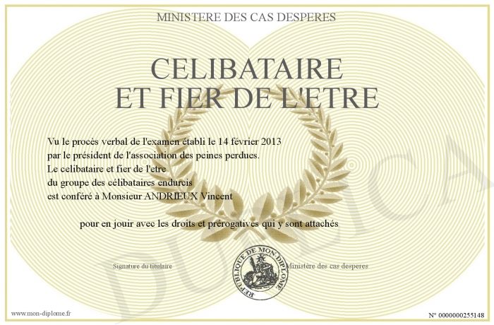 Envoyez par email votre celibataire et fier de l'etre personalisé