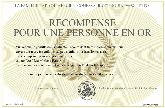 Envoyez par email votre Récompense pour une personne en or personalisé