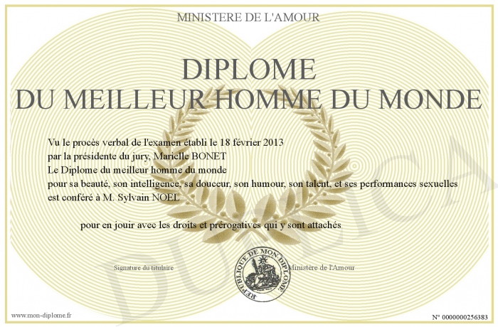 Envoyez par email votre Diplôme du meilleur homme du monde personalisé
