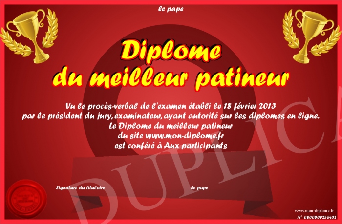 Envoyez par email votre Diplôme du meilleur patineur personalisé