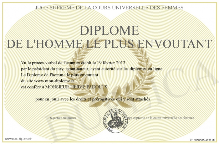 Envoyez par email votre Diplôme de l'homme le plus envoutant personalisé