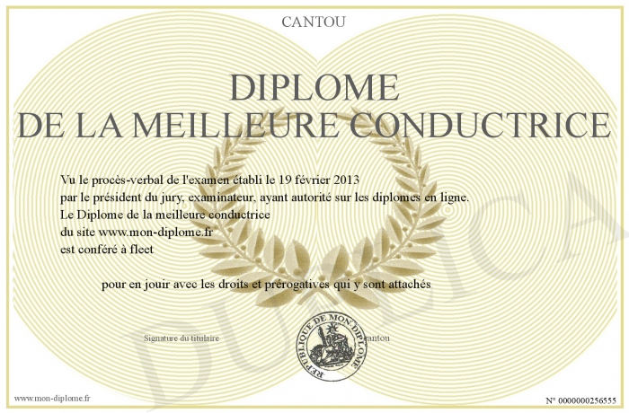 Envoyez par email votre Diplôme de la meilleure conductrice personalisé