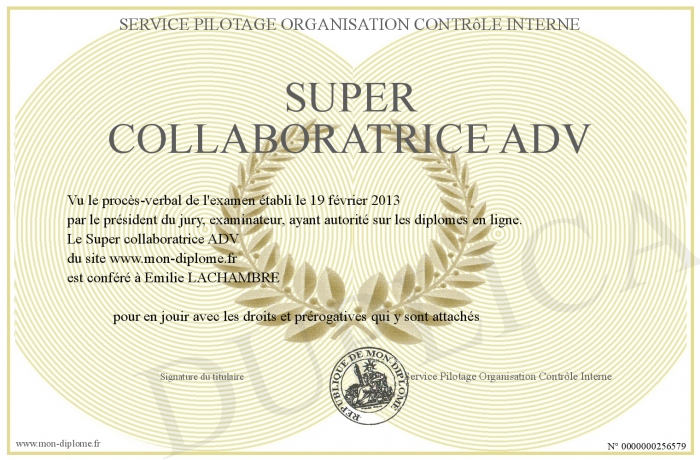 Envoyez par email votre Super collaboratrice ADV personalisé