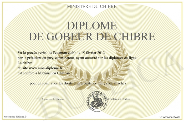 Envoyez par email votre Diplôme de Gobeur de Chibre personalisé