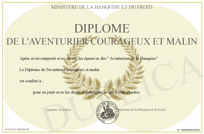 Envoyez par email votre Diplôme de l'aventurier courageux et malin personalisé
