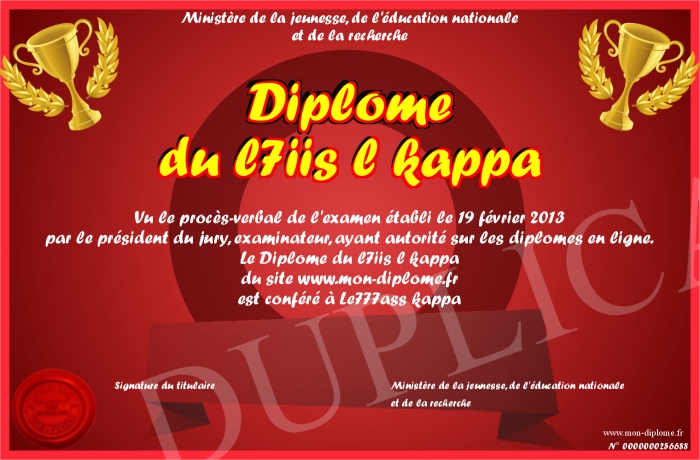 Envoyez par email votre Diplôme du l7iis l kappa personalisé