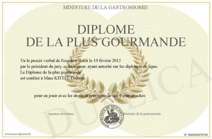 Envoyez par email votre Diplôme de la plus gourmande personalisé