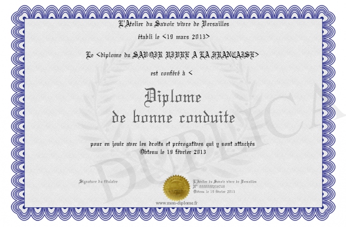 Envoyez par email votre Diplome de bonne conduite personalisé