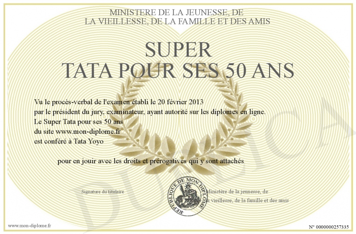 Envoyez par email votre Super Tata pour ses 50 ans personalisé