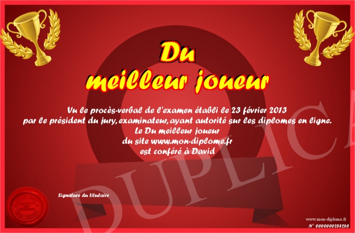 Envoyez par email votre Du meilleur joueur personalisé