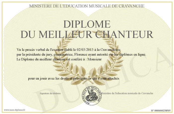 Envoyez par email votre Diplôme du meilleur chanteur personalisé