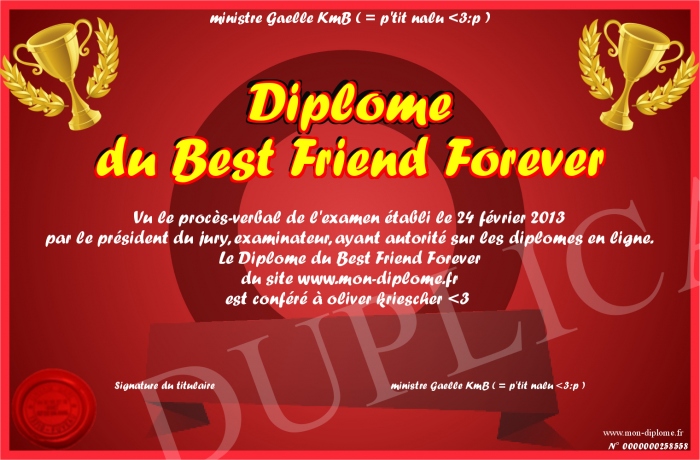 Envoyez par email votre Diplôme du Best Friend Forever personalisé
