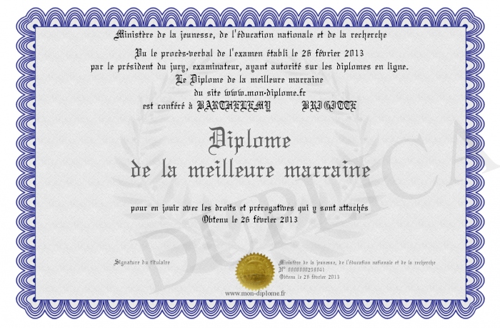 Envoyez par email votre Diplôme de la meilleure marraine personalisé