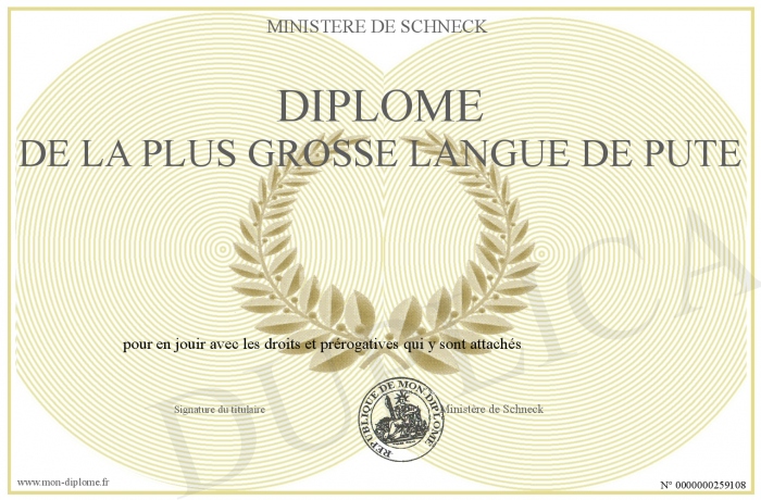 Envoyez par email votre Diplôme de la plus grosse langue de pute personalisé