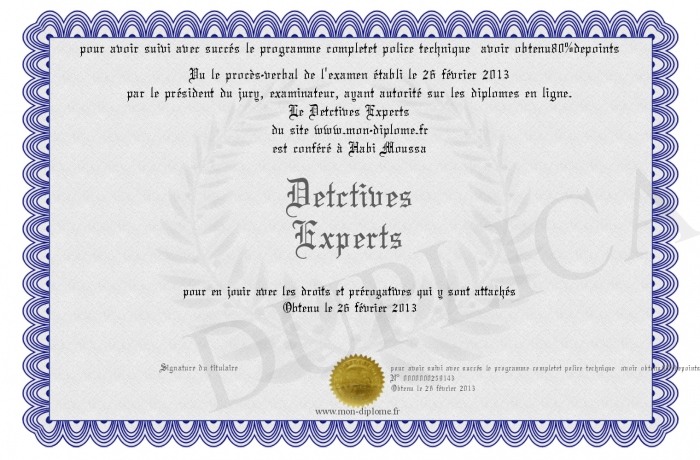 envoyé par le pour avoir suivi avec succés le programme completet police technique avoir obtenu80%depoints !