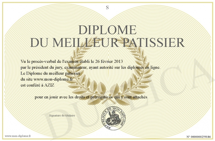 Envoyez par email votre Diplôme du meilleur patissier personalisé