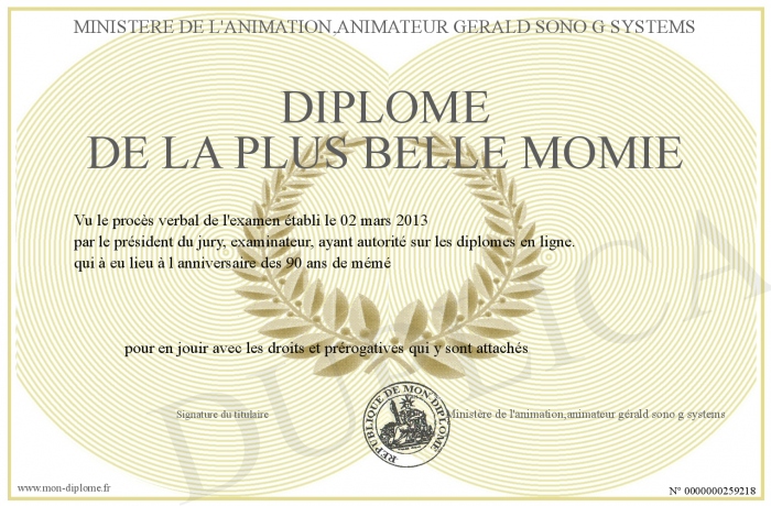 Envoyez par email votre Diplôme de la plus belle momie personalisé