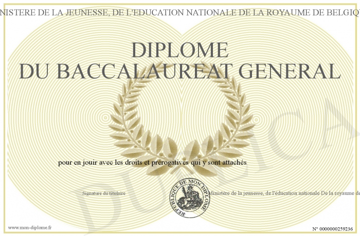 Envoyez par email votre Diplôme du baccalaureat général personalisé