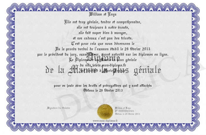 Envoyez par email votre Diplôme de la Mamie la plus géniale personalisé