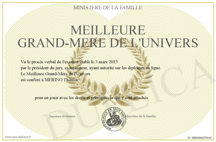 Envoyez par email votre Meilleure Grand-Mère de l'Univers personalisé