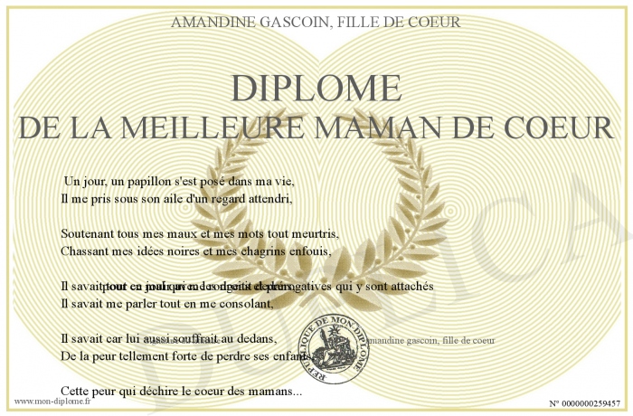 Envoyez par email votre Diplôme de la meilleure maman de coeur personalisé