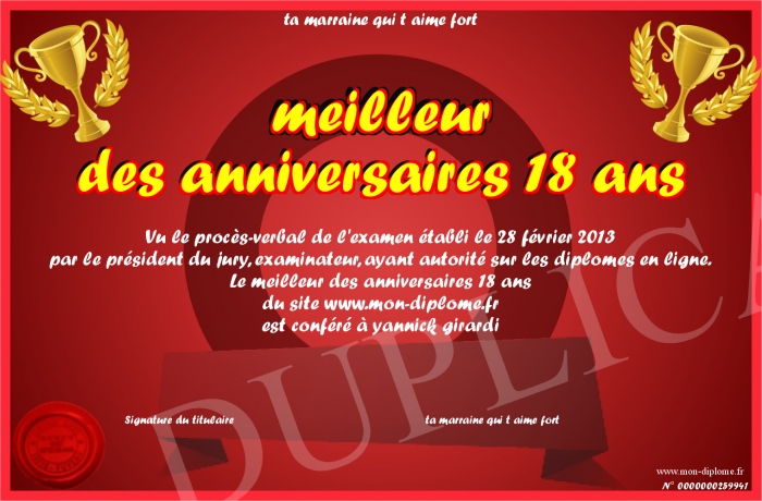 Envoyez par email votre meilleur des anniversaires 18 ans personalisé