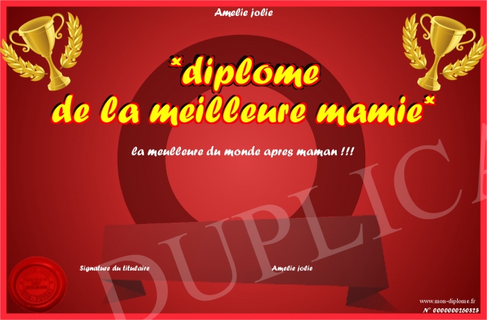 Envoyez par email votre *diplôme de la meilleure mamie* personalisé