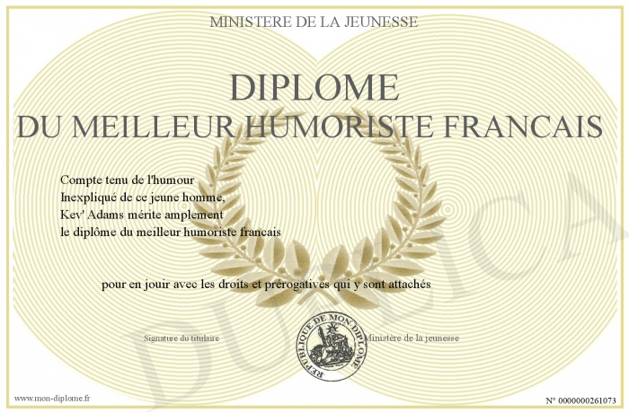 Envoyez par email votre Diplôme du meilleur humoriste francais personalisé