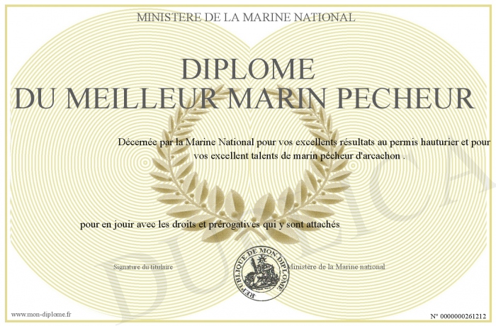Envoyez par email votre Diplôme du meilleur marin pécheur personalisé