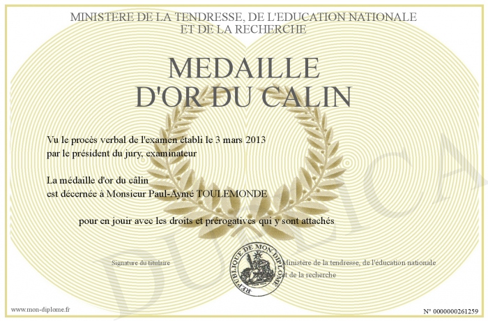 Envoyez par email votre Médaille d'or du calin personalisé