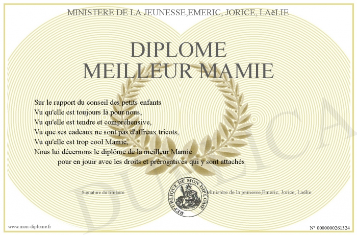 Envoyez par email votre Diplôme meilleur mamie personalisé