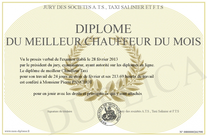 Envoyez par email votre Diplôme du meilleur chauffeur du mois personalisé