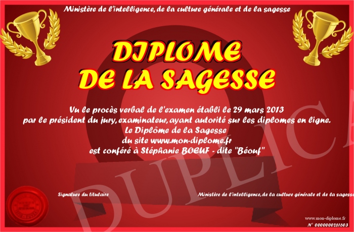 Envoyez par email votre DIPLOME DE LA SAGESSE personalisé