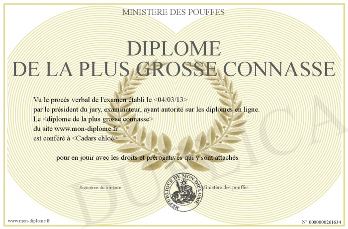 Envoyez par email votre Diplome de la plus grosse connasse personalisé