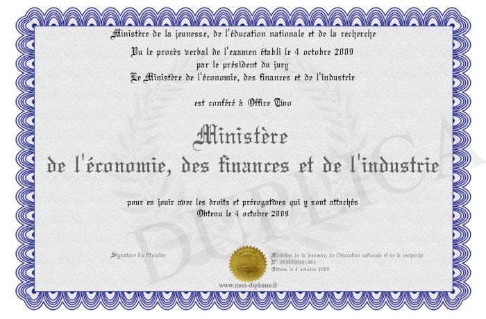 Envoyez par email votre Ministère de l'économie, des finances et de l'industrie personalisé