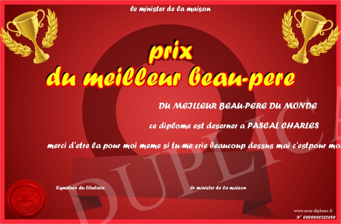 Envoyez par email votre prix du meilleur beau-pere personalisé