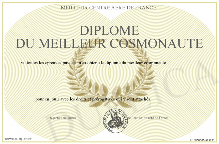 Envoyez par email votre Diplome du meilleur cosmonaute personalisé