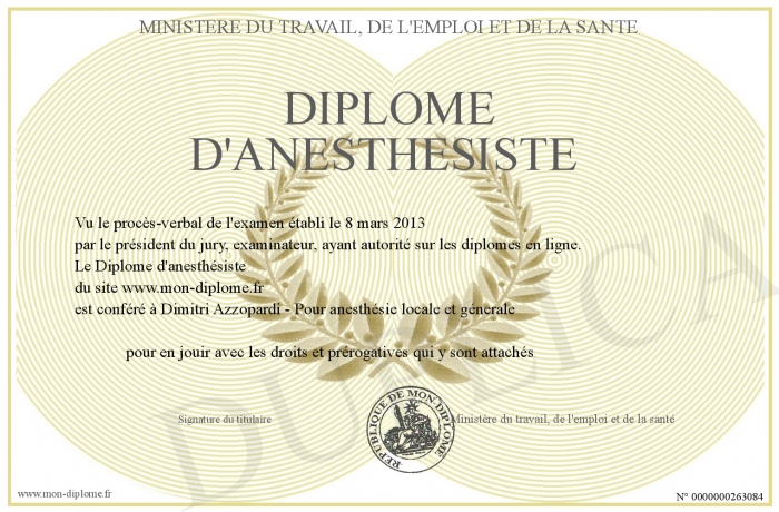 Envoyez par email votre Diplôme d'anesthésiste personalisé