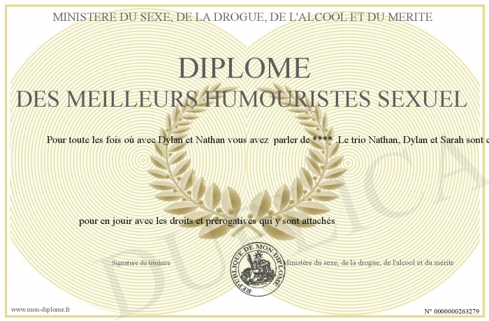 Envoyez par email votre diplome des meilleurs humouristes sexuel personalisé