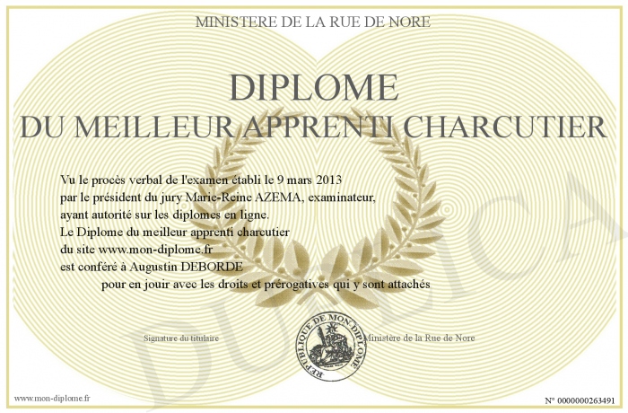 Envoyez par email votre Diplôme du meilleur apprenti charcutier personalisé