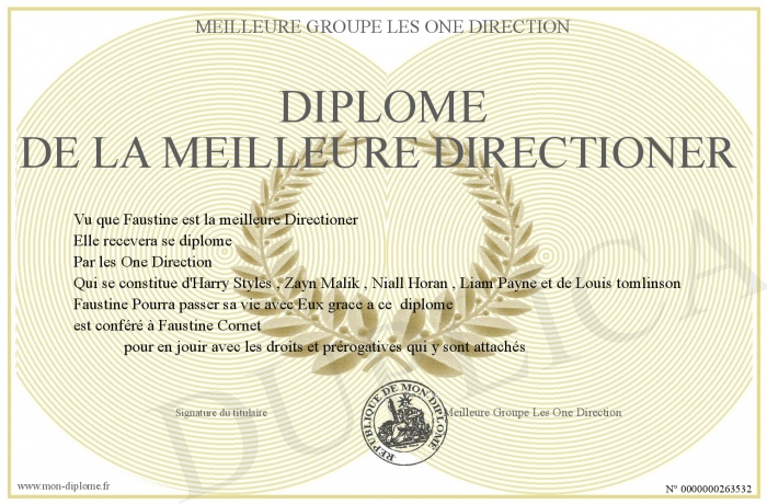 Envoyez par email votre Diplôme de la Meilleure Directioner personalisé