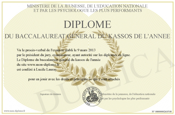 Envoyez par email votre Diplôme du baccalaureat général du kassos de l'année personalisé