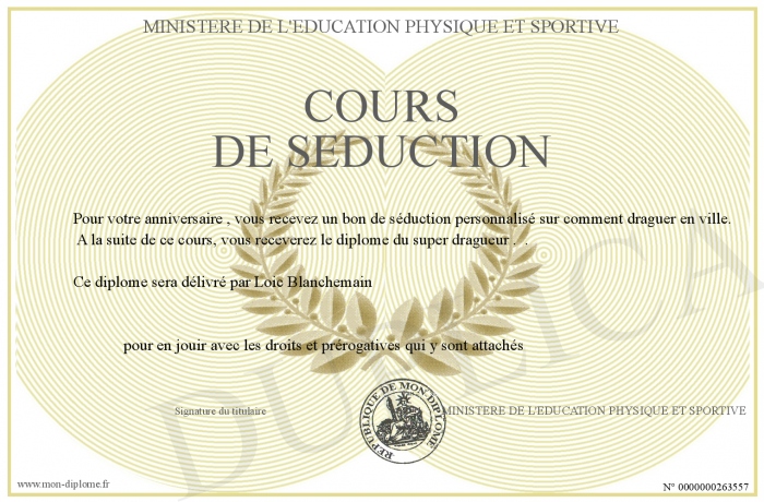 Envoyez par email votre COURS DE SEDUCTION personalisé