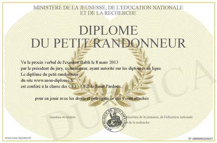 Envoyez par email votre Diplôme du Petit randonneur personalisé