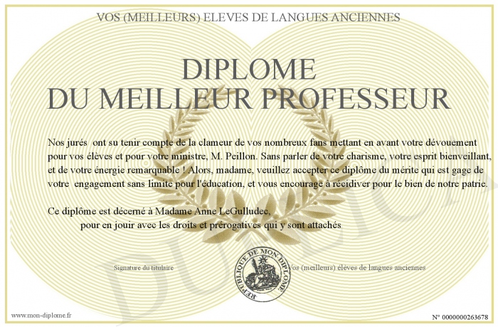 Envoyez par email votre Diplôme du Meilleur Professeur personalisé