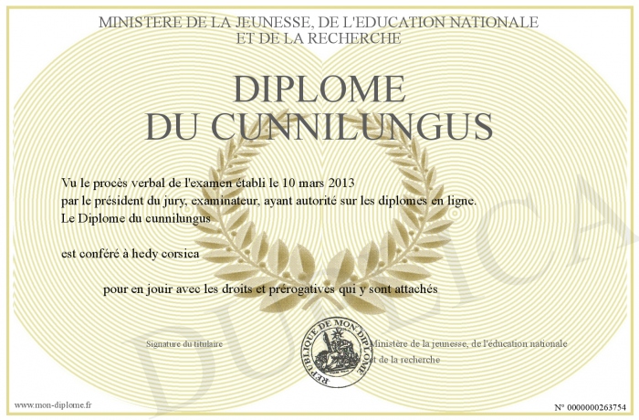 Envoyez par email votre Diplôme du cunnilungus personalisé