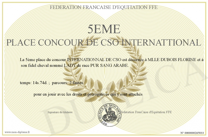 Envoyez par email votre 5eme place CONCOUR DE CSO INTERNATTIONAL personalisé