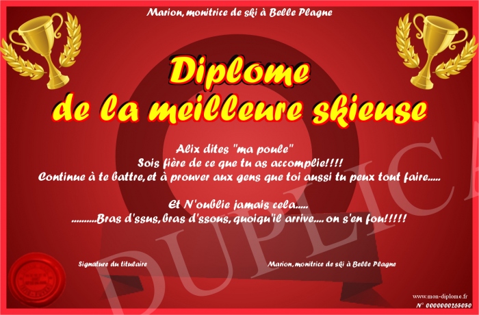 Envoyez par email votre Diplôme de la meilleure skieuse personalisé
