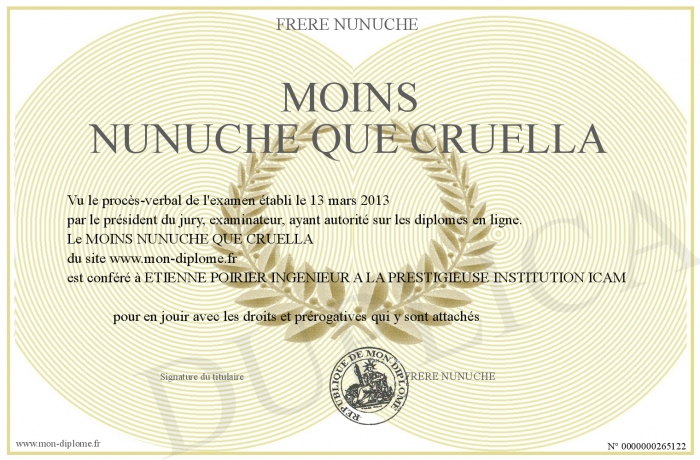 Envoyez par email votre MOINS NUNUCHE QUE CRUELLA personalisé
